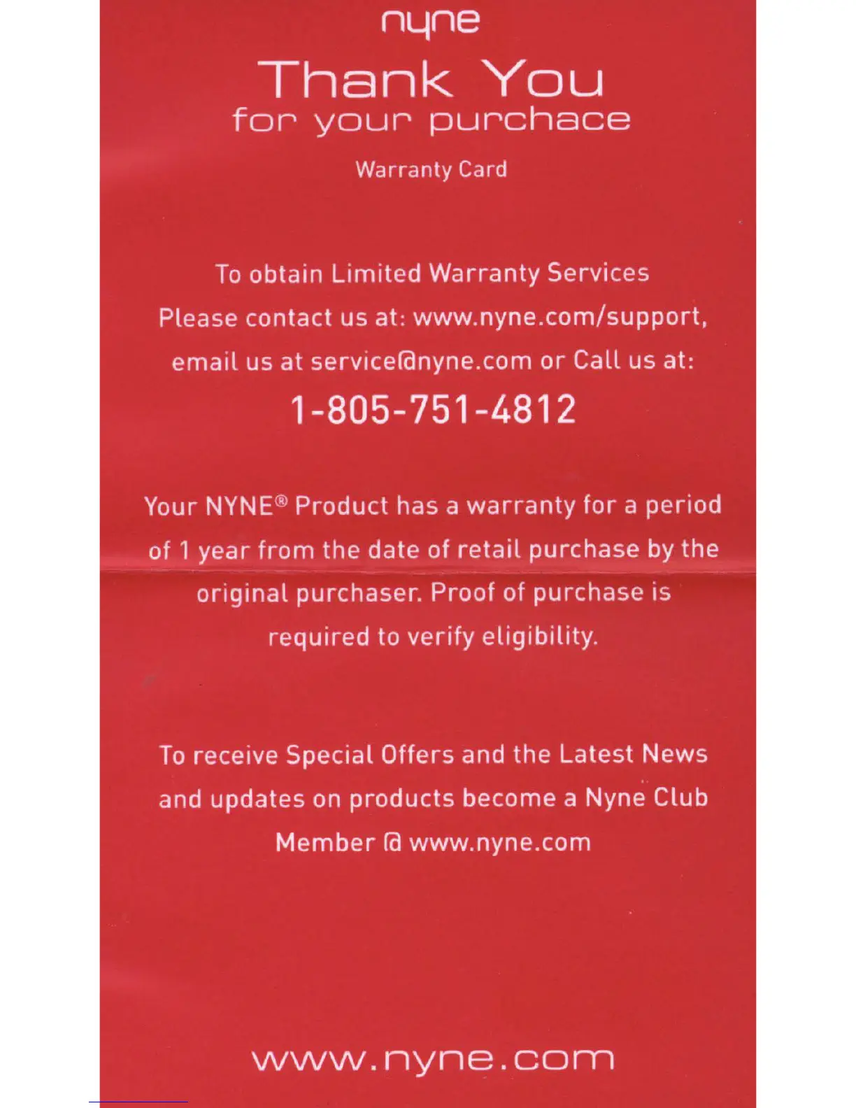Nyne Cruiser - Customer Support and Warranty; Warranty Service Contact Information; Product Warranty Duration; Nyne Club Membership Offer
