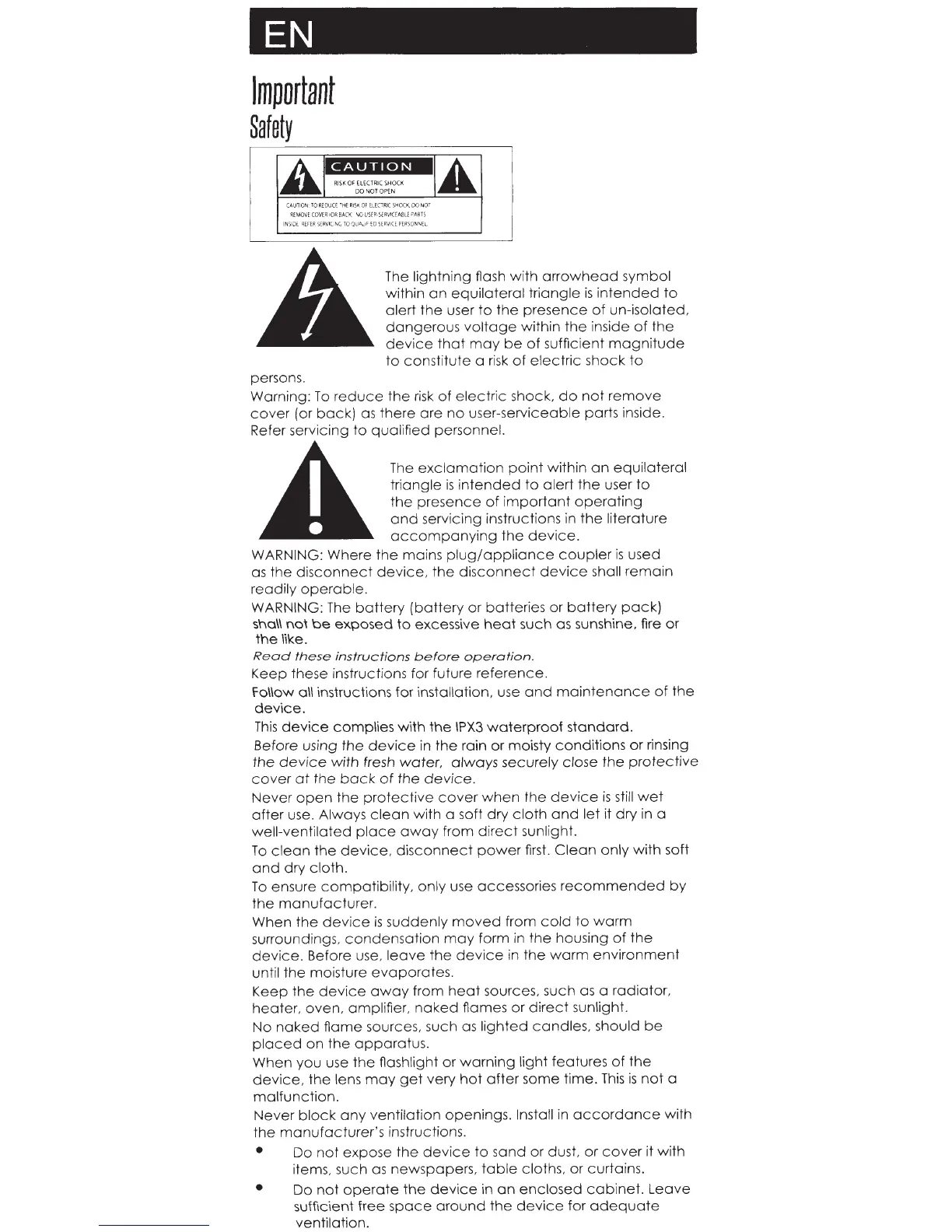 Nyne rock - Important Safety Information; Electrical Shock and Component Warnings; Environmental and Usage Guidelines