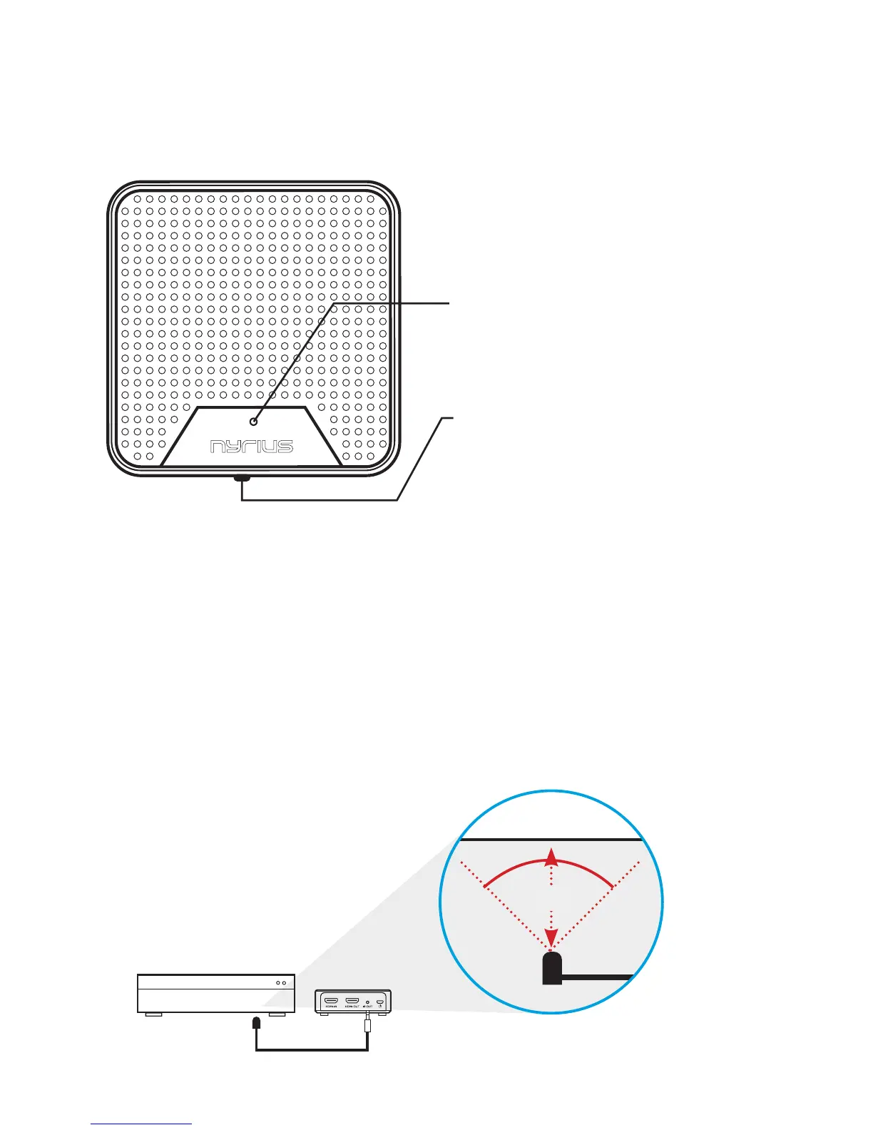 2. Place the IR remote extender bubble in front of the HD device