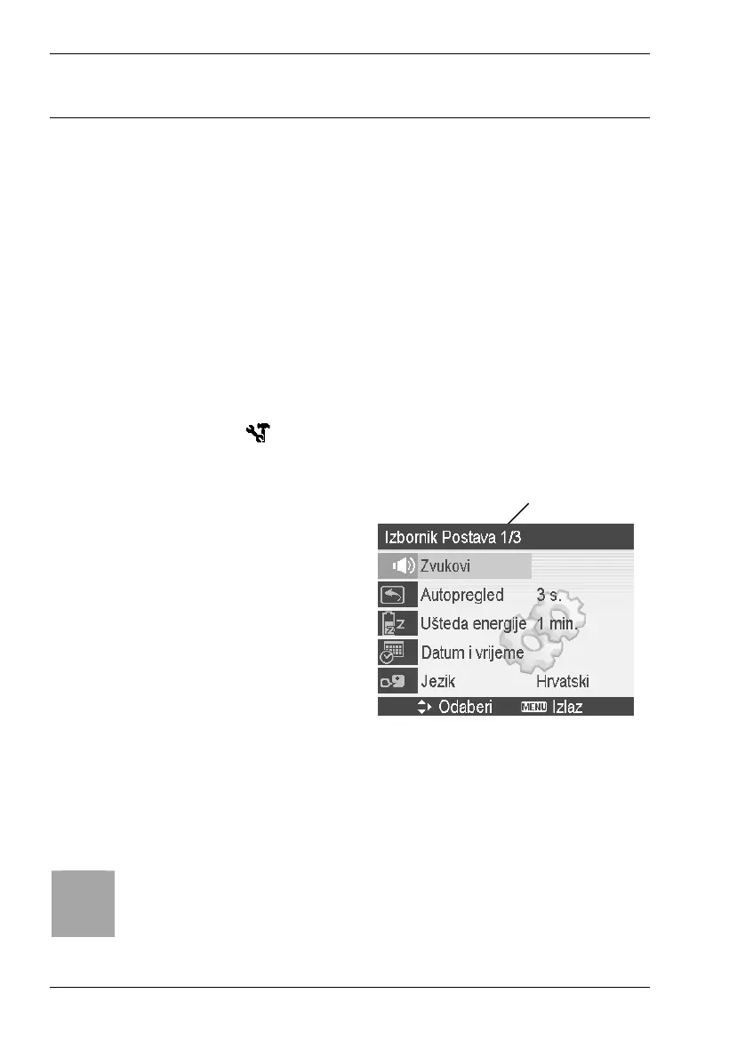 Izbornik Postava sadrži osnovne komande i funkcijske opcije fotoaparata
