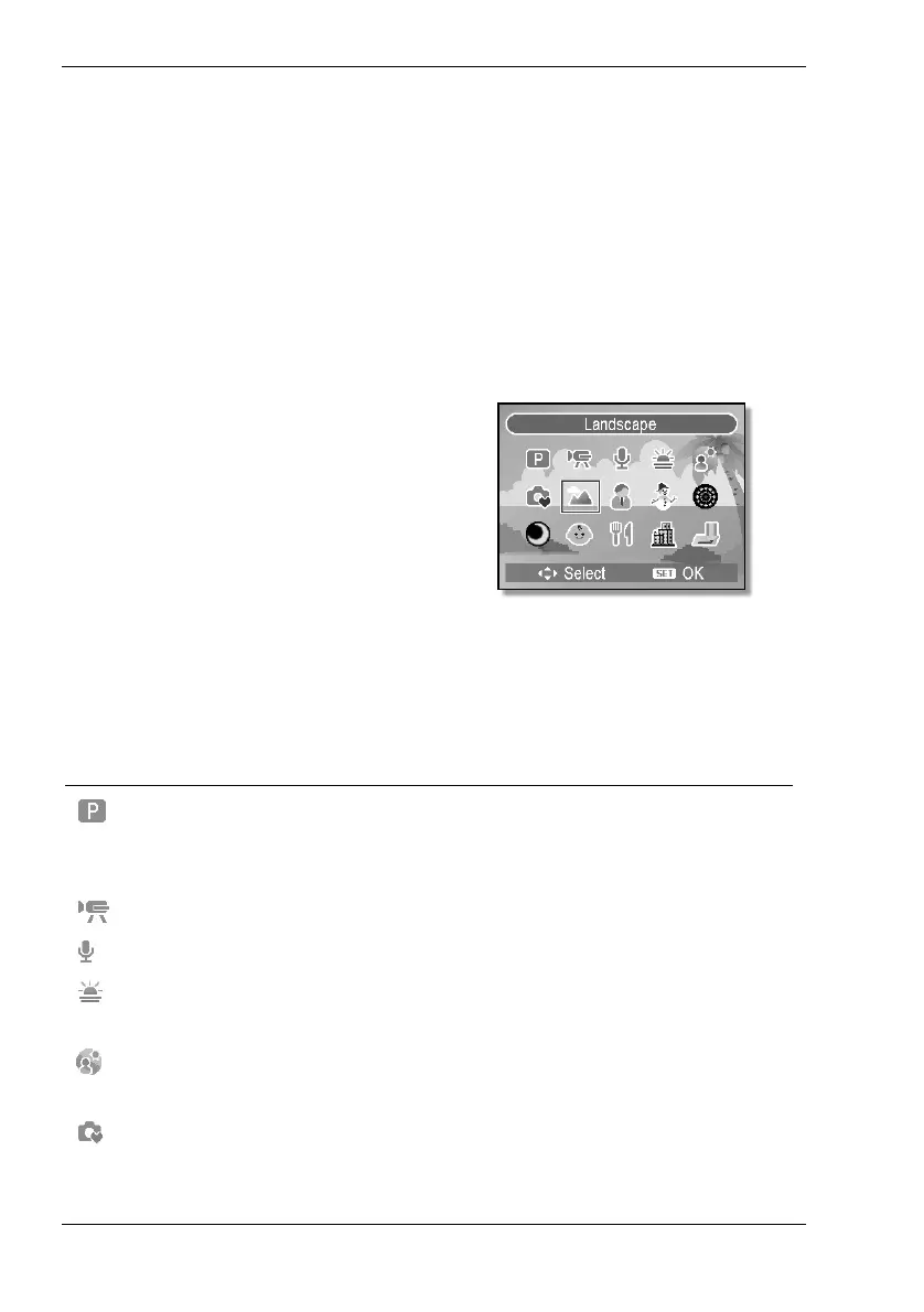 1. Power the camera on in Record mode (see page 13 - Switching the