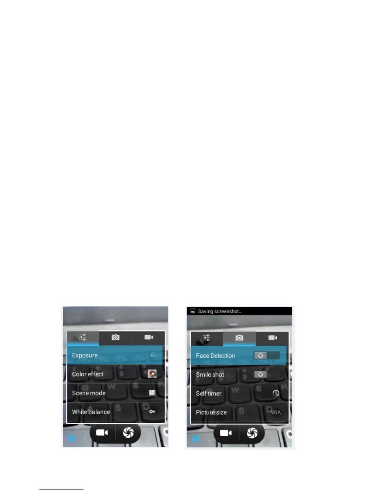 2) click the shutter button directly on the screen, and take the picture.