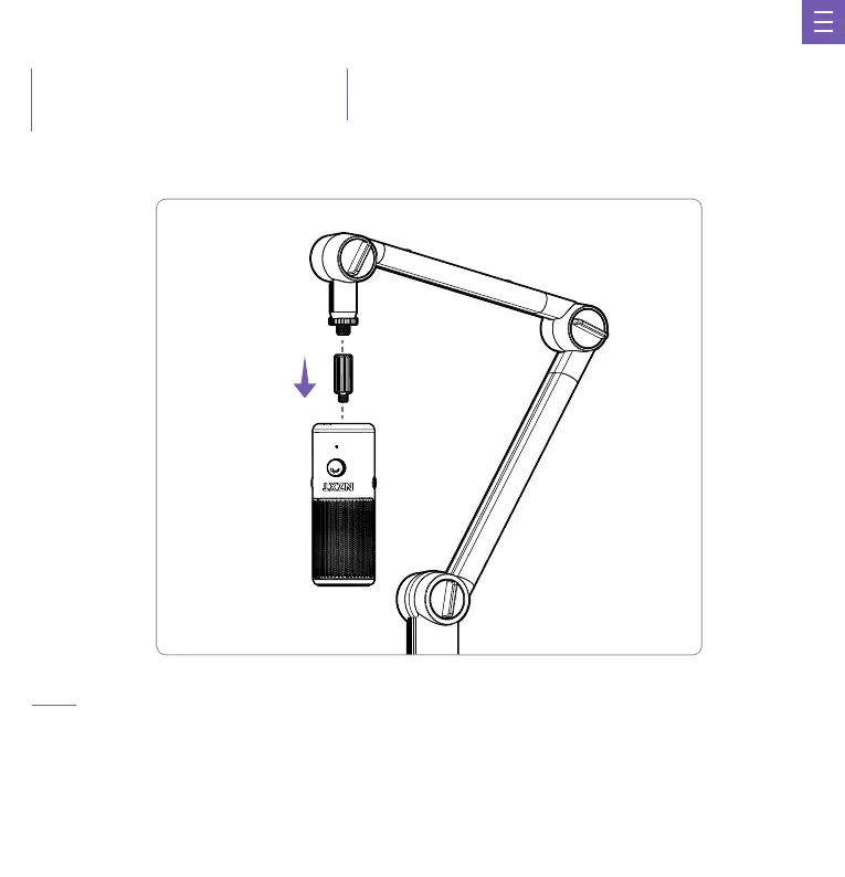 If using NZXT Capsule USB Microphone, insert included male 1 / 4” to female 3/8” adapter into bottom of microphone, then attach the microphone with