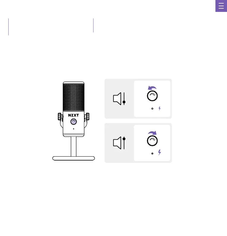 The headphone output controls the volume of the headphones connected to the USB microphone. Turn clockwise to increase the volume and