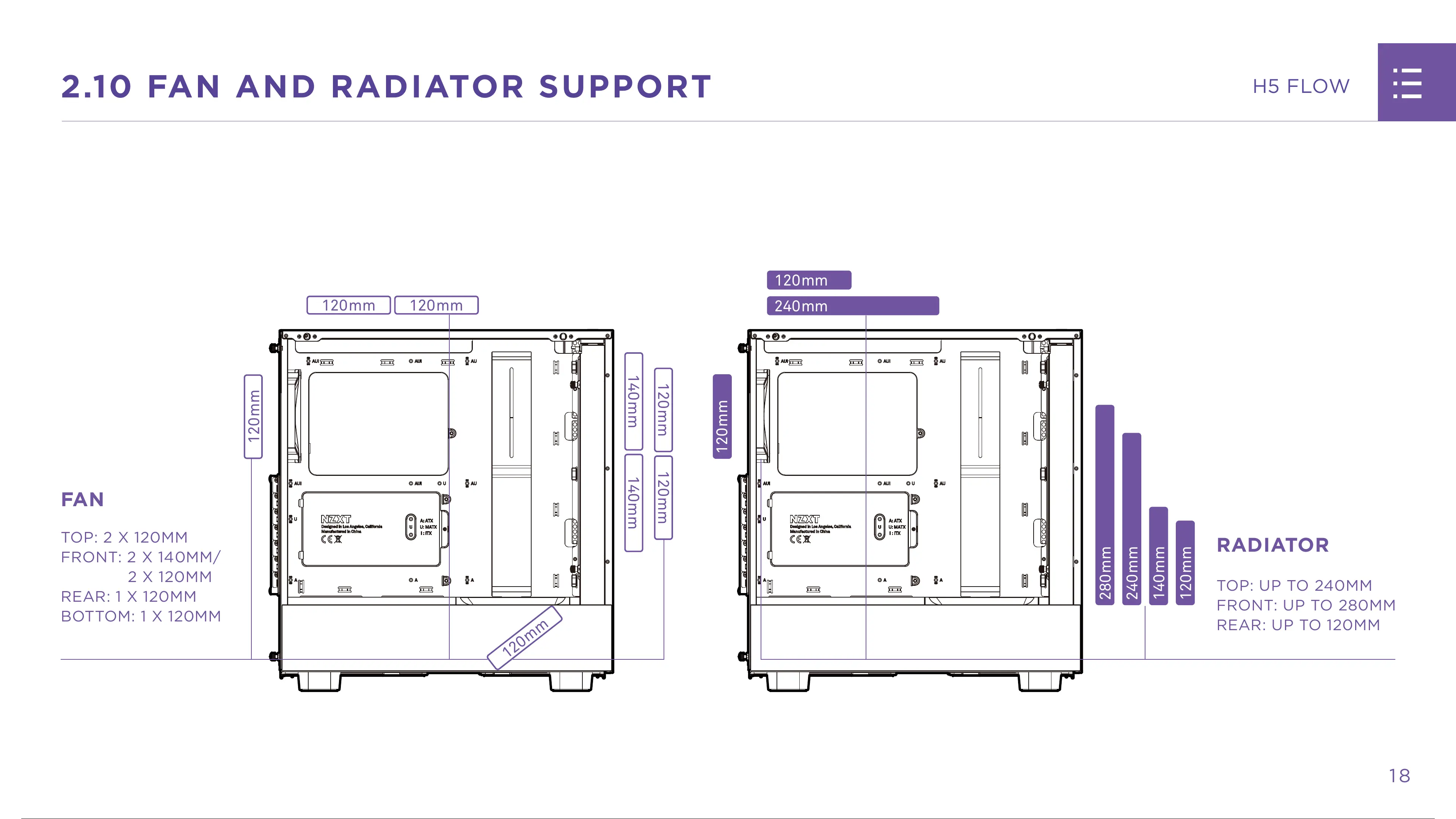 NZXT H5 FLOW - Fan and Radiator Support