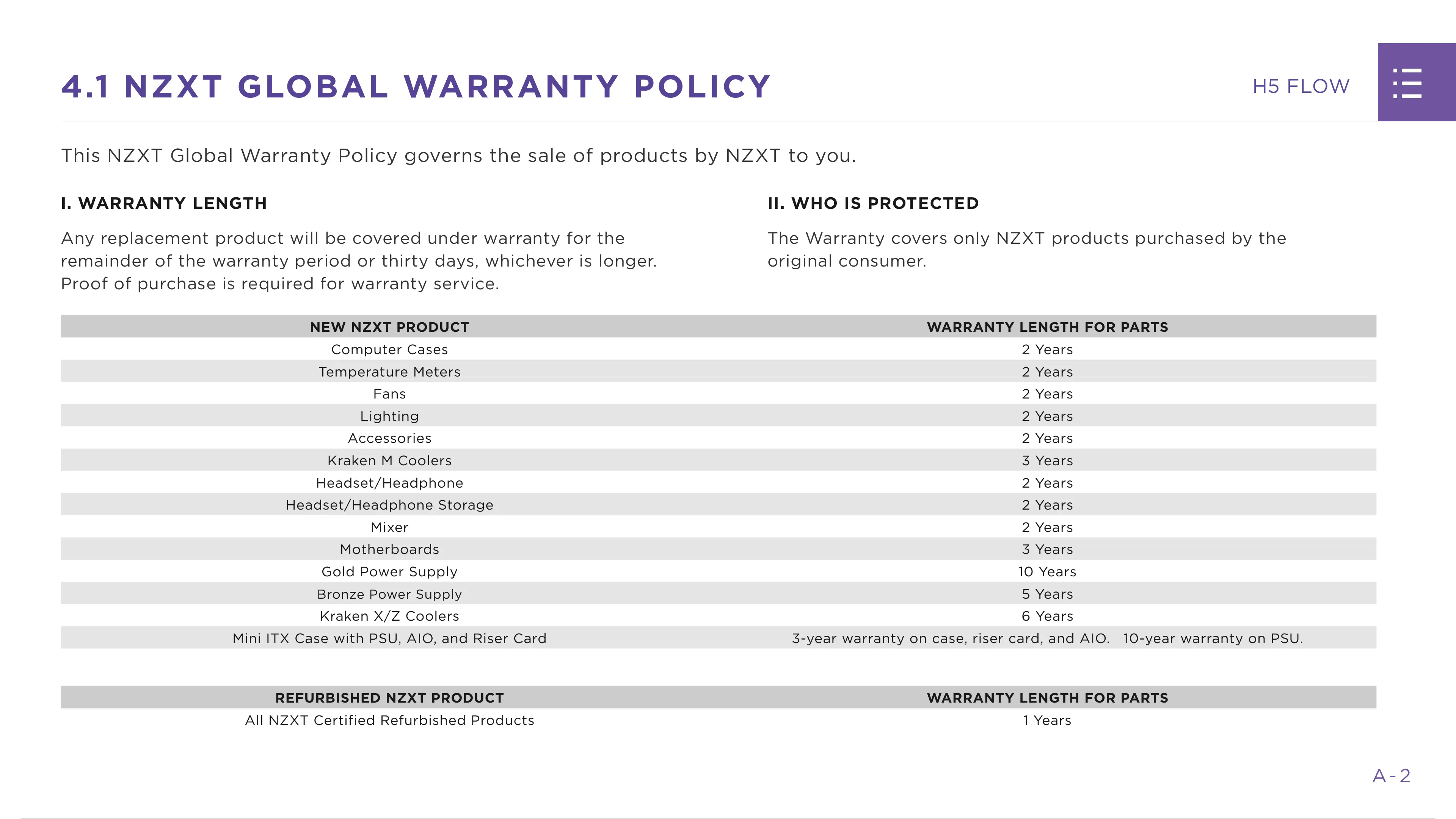 REFURBISHED NZXT PRODUCT WARRANTY LENGTH FOR PARTS