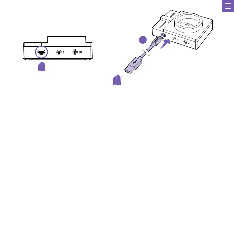 : 適切な動作を保証するため、USBケーブルは完全に挿入し、ミキサーの背面のコネクタに装着したままにします。