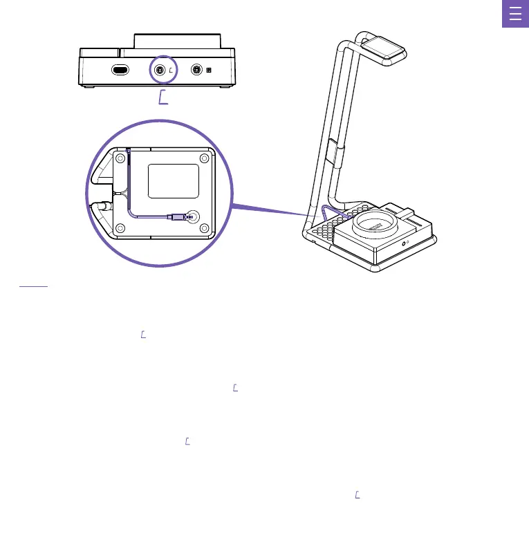 Locate the 2.5mm cable at the bottom of the Stand. Lay the Mixer on the base of the Stand and insert the cable into the 2.5mm input jack on