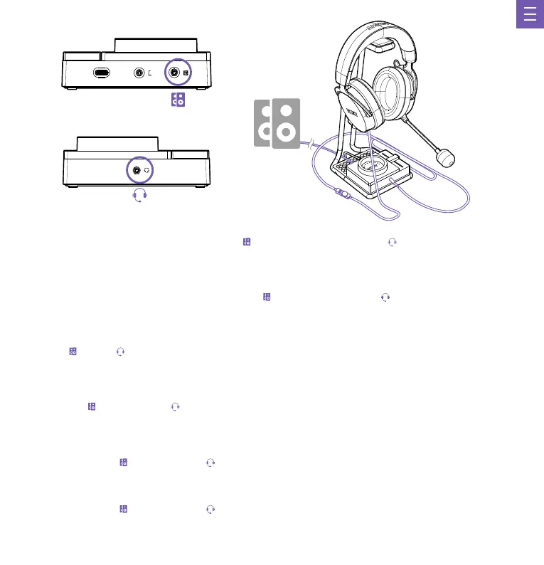중요: SWITCHMIX의 성능을 올바르게 발휘하려면 케이블이 스피커 및/또는 헤드셋 소켓에 완전히 장착되었는지 확인합니다. 플러그를 믹서에 꽂아서 연결