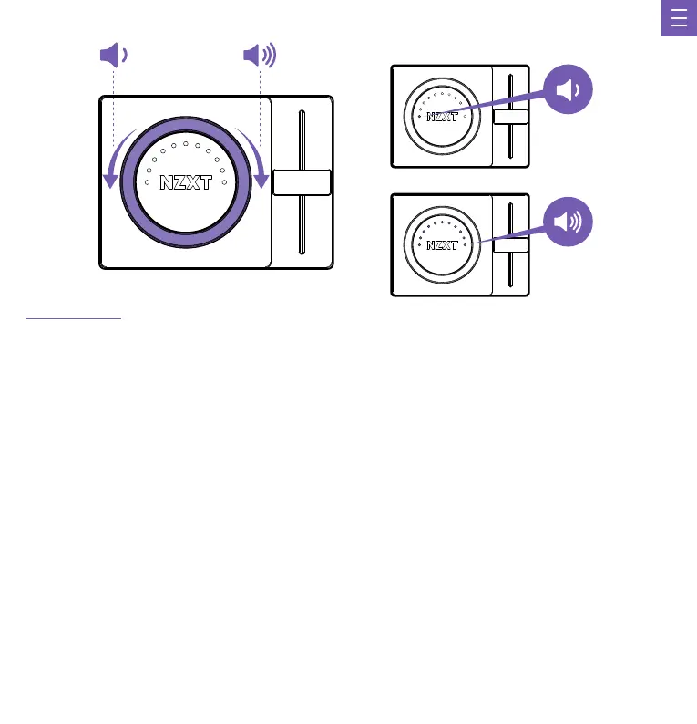 볼륨 노브는 헤드셋과 스피커 볼륨을 디지털 방식을 통해 독립적으로 제어