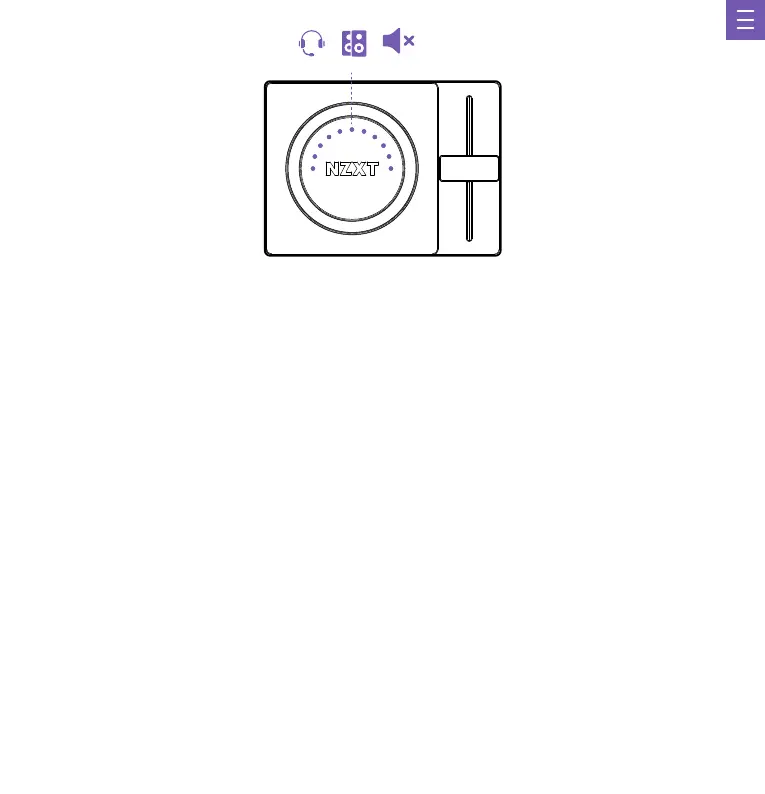 11個のLEDライトが音量を示します。白く点灯している場合、つまみはヘッドセットのメインボリュームを制御します。紫色に点灯している場合、つまみはスピー