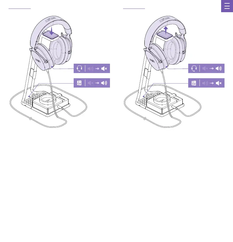 top of the stand; your headset volume will fade out, and your speakers will turn on with a soft start. Swapping audio works in reverse, as well: if you are
