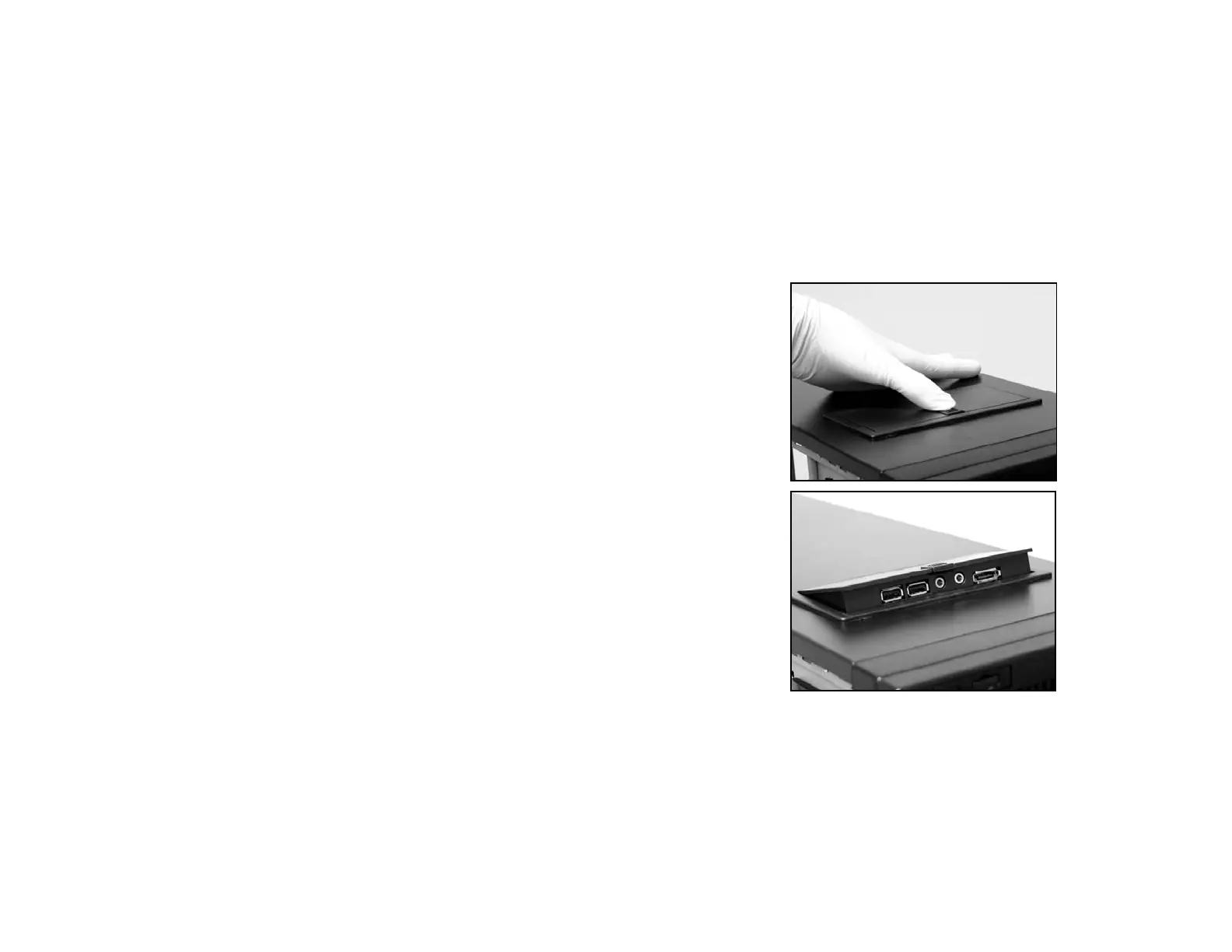 power switch and reset pins are located. The power and reset