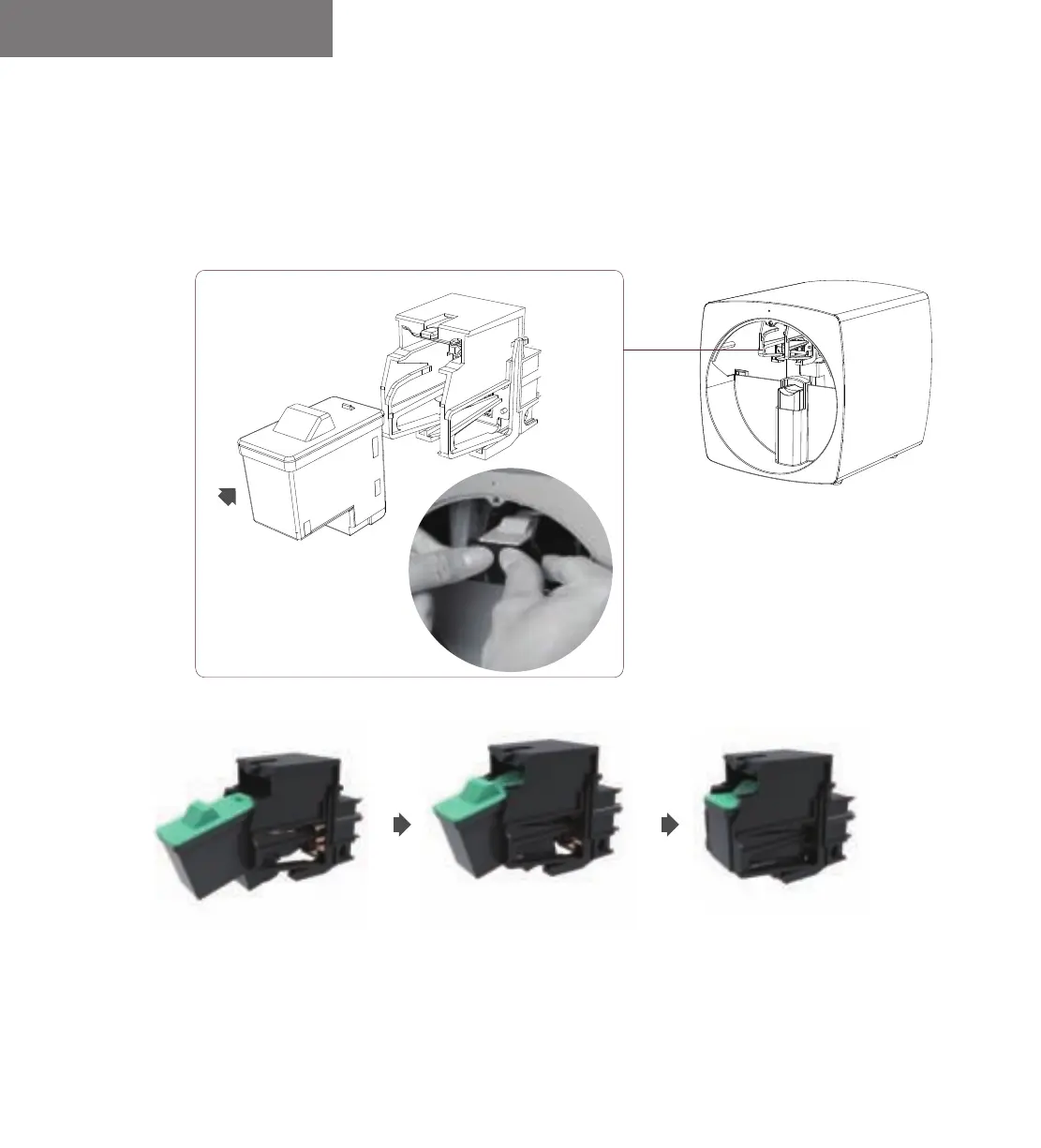 Find the cartridge holder and push the cartridge into the cartridge holder, and then installation is