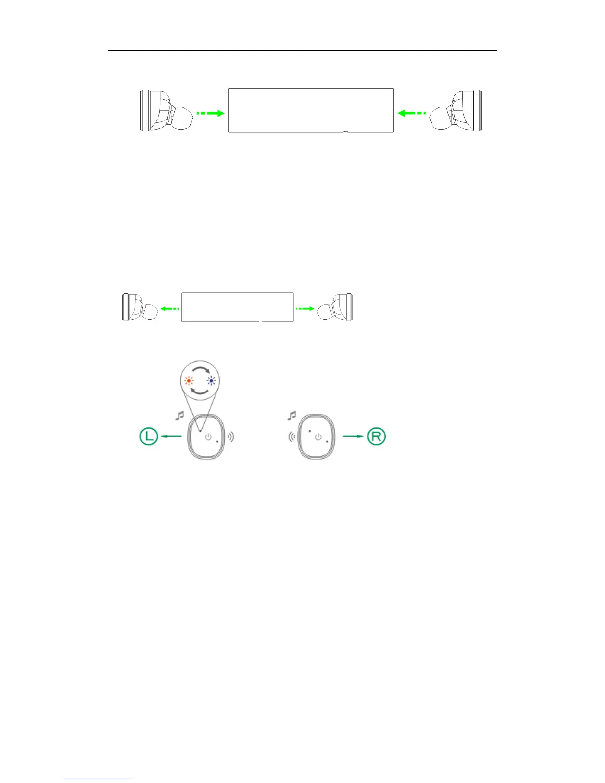 Take out the “L” and “R” headset from charging bin, the headset will power on