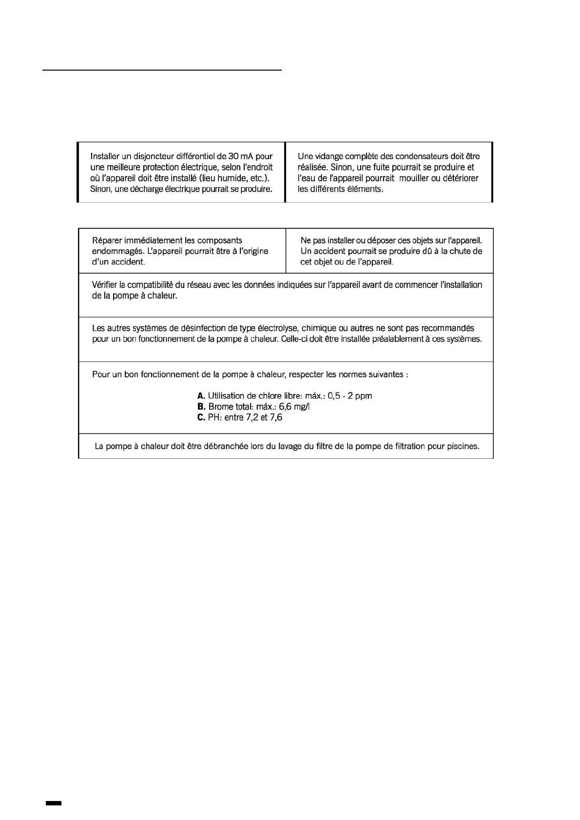 l’installation et la réparation de pompes à chaleur. L’utilisateur ne doit pas installer ou réparer lui-même la pompe à chaleur