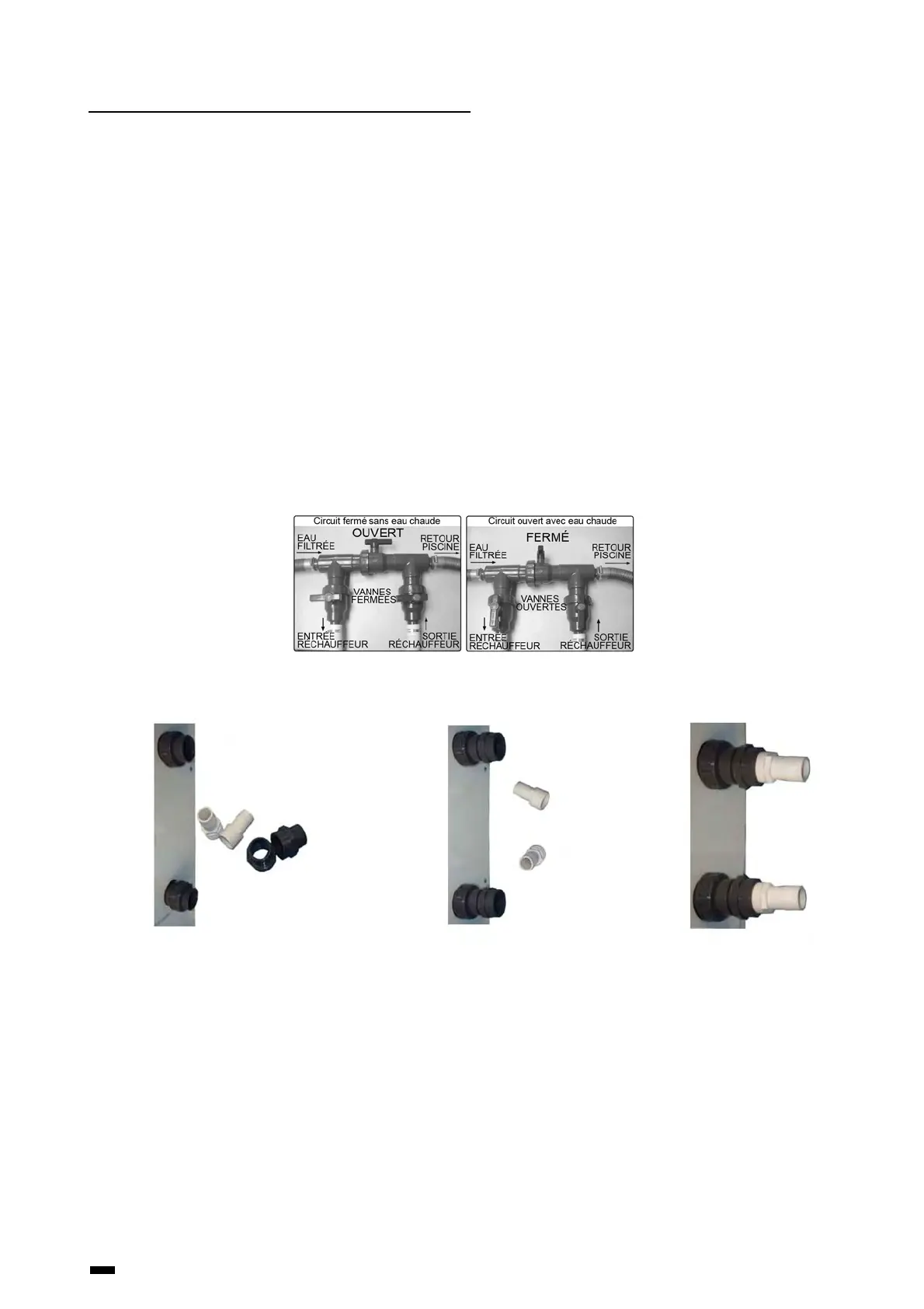 branchement sera réalisé à partir d’un by-pass sur le circuit de filtration de la piscine après le filtre et avant le traitement de
