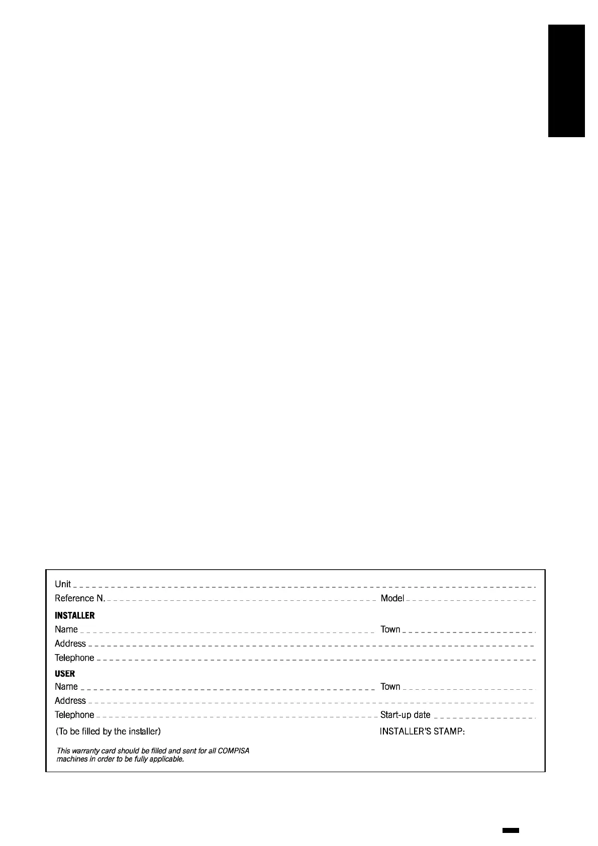 tallations or start-ups included in the contract of sale of the Product and carried out by the salesman or under his/her responsibility.