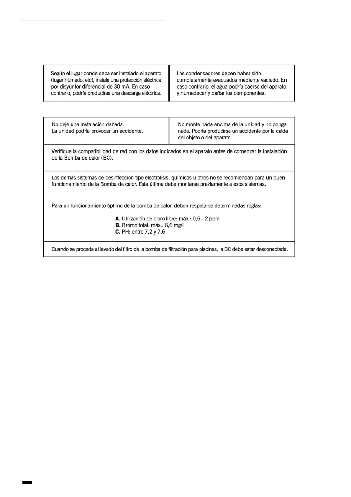 con experiencia para la instalación y reparación de bombas de calor. El usuario no debe instalar o reparar él mismo la bomba