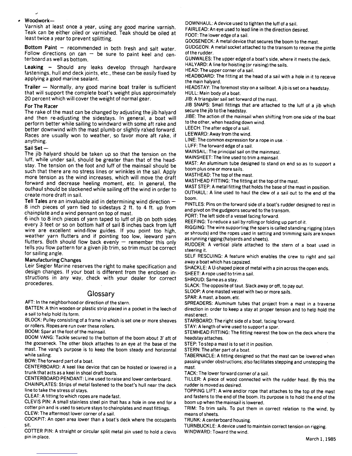 VarnIsh at least once a year, using any good marine varnish. FAIRLEAD: An eye used to lead line in the direction desired.