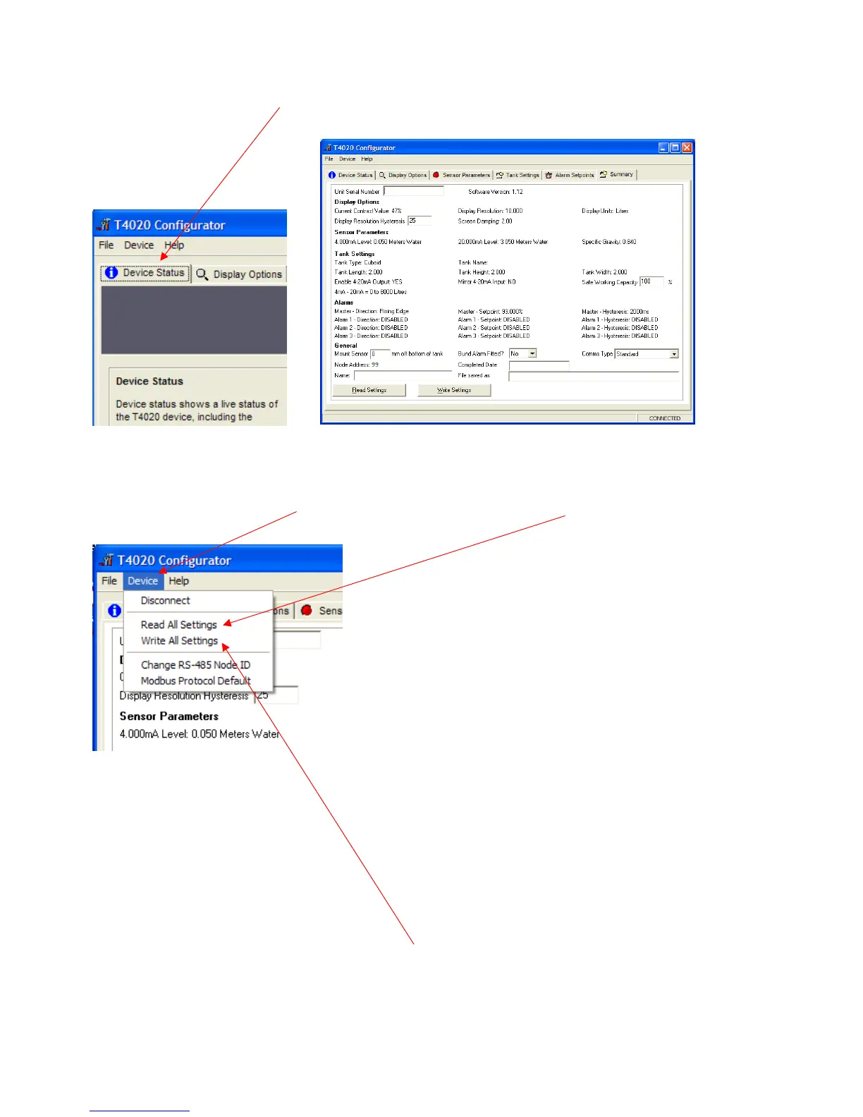 ONLY READ AND WRITE SETTING FROM THE DEVICE TAB AT THE TOP OF THE PAGE.
