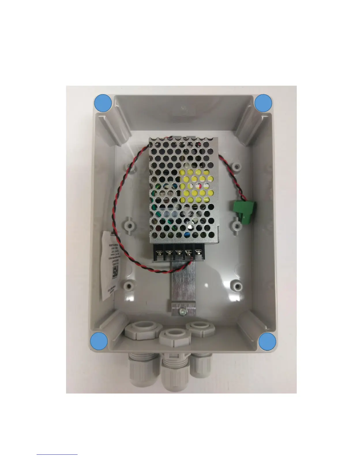 There are 4 mounting holes in the base of the unit (indicated with the Blue Circles).