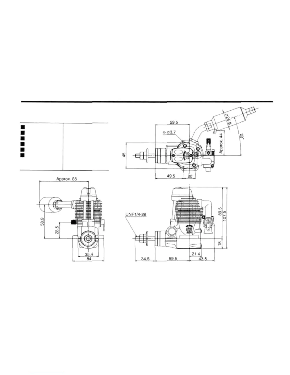 O.S. engine FL-70 - Engine Dimensions and Specifications