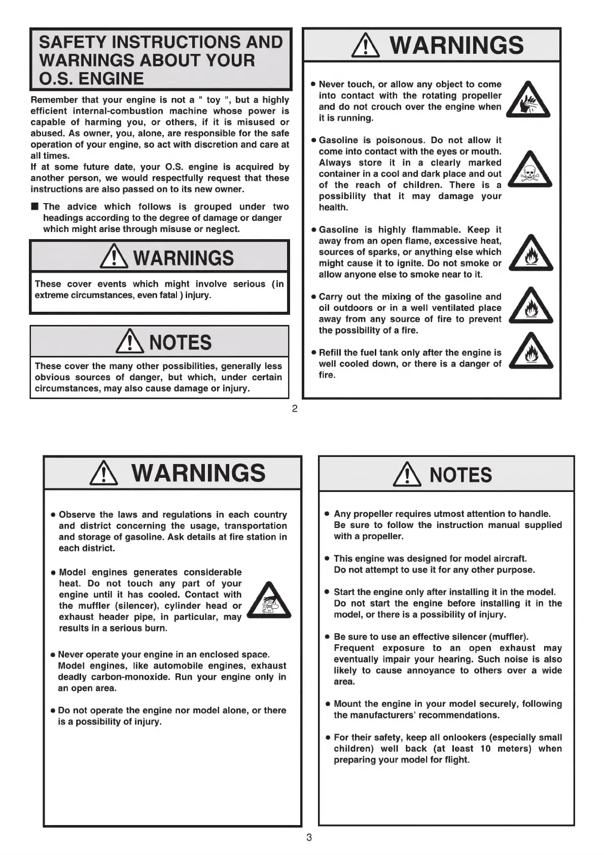 O.S. engine GT33 - Safety Instructions and Warnings about Your O.s; Engine