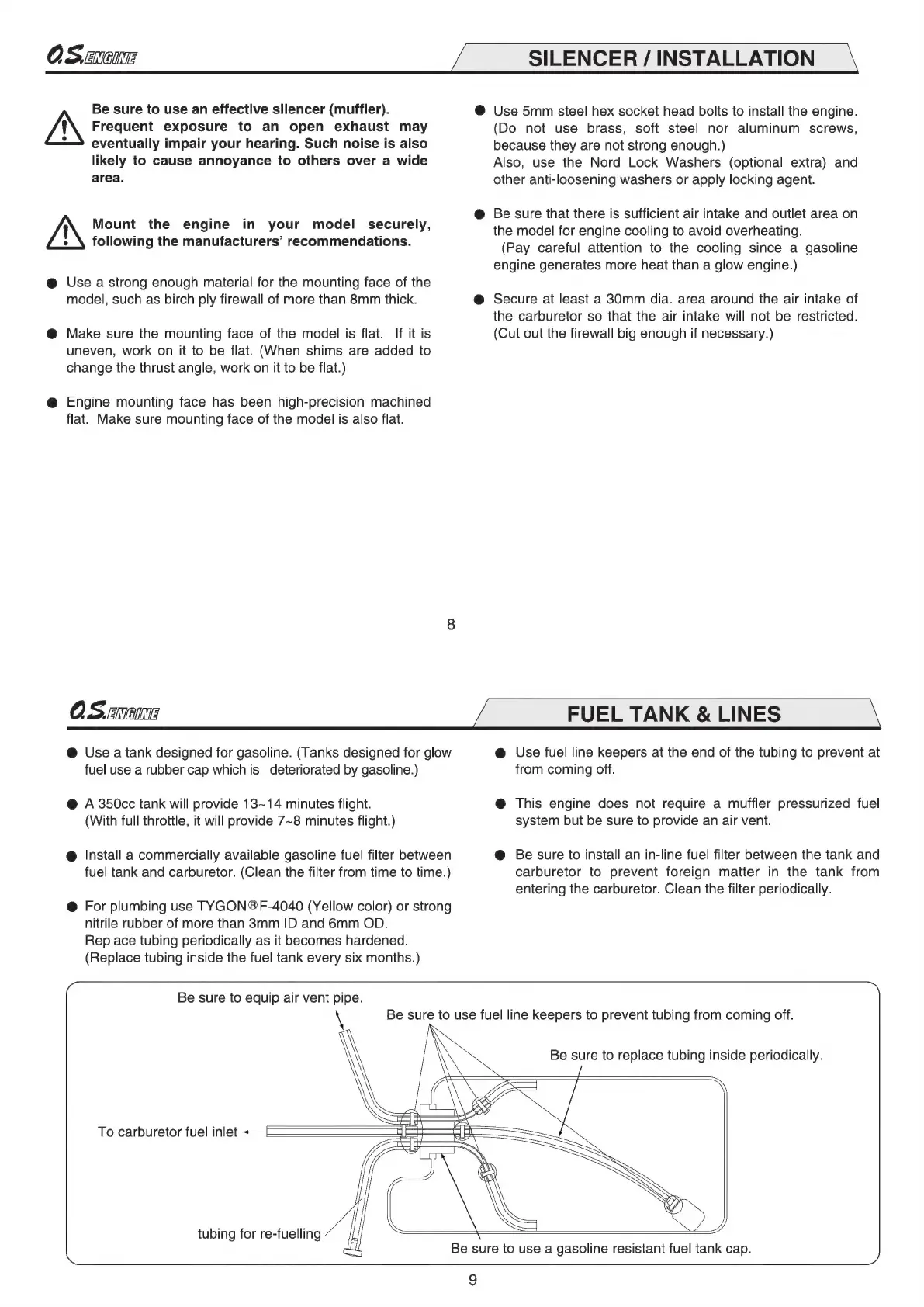 O.S. engine GT33 - Silencer; Installation; Fuel Tank & Lines