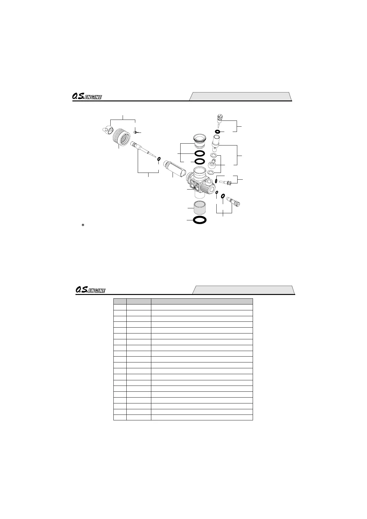 O.S. engine MAX-28XZ - Carburetor Exploded View; Parts List