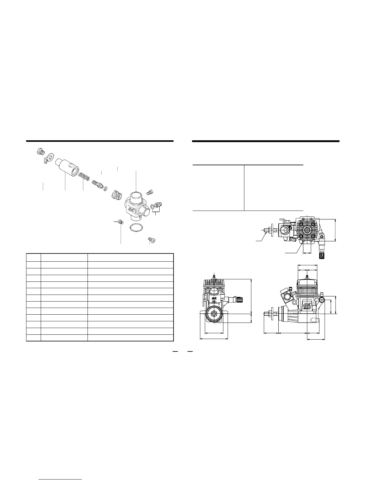 O.S. engine MAX-32SX - MAX-15 CV-A Three View and Specifications