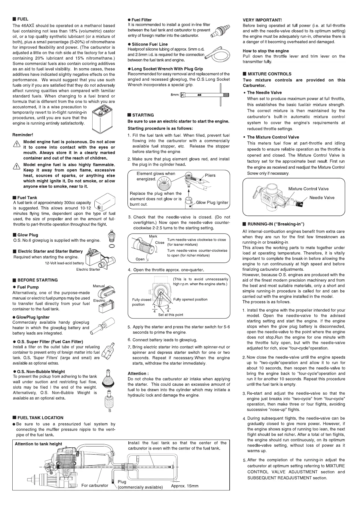 O.S. engine MAX-46AX II - Starting and Running-In; Starting Procedure; Running-In (Breaking-in); How to Stop the Engine