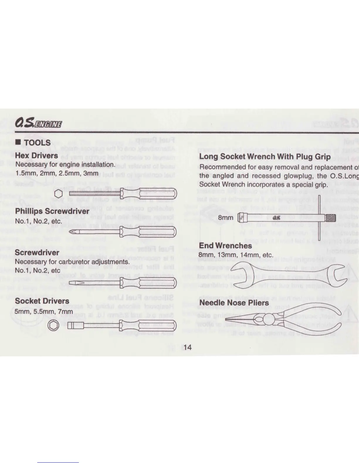 O.S. engine MAX-91HZ - Tools; Hex Drivers; Screwdriver; Long Socket Wrench with Plug Grip