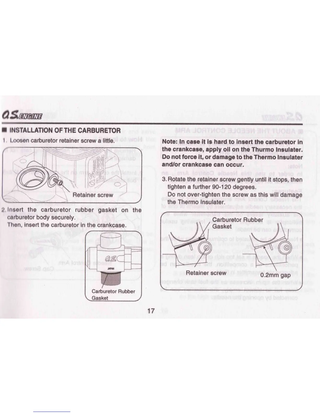 O.S. engine MAX-91HZ - Carburetor Installation Procedure