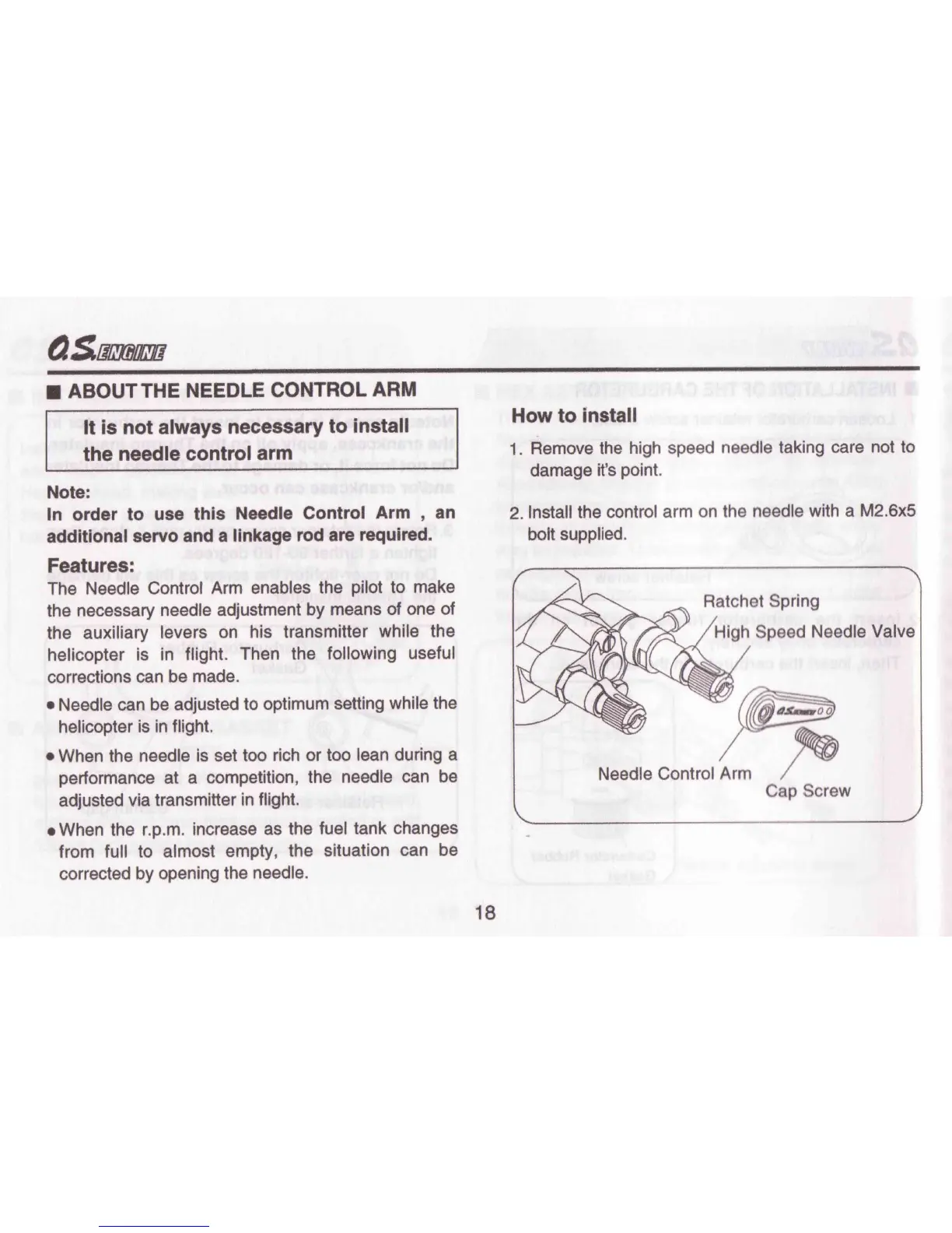 O.S. engine MAX-91HZ - Needle Control Arm Installation