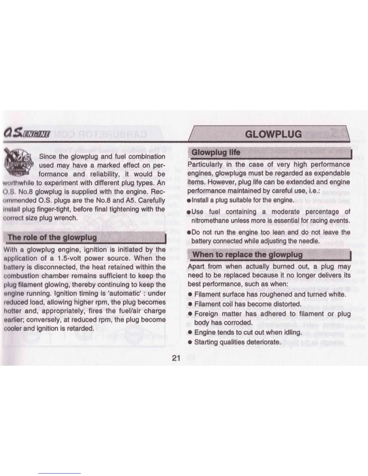 O.S. engine MAX-91HZ - The Role of the Glowplug; Glowplug Life; When to Replace the Glowplug