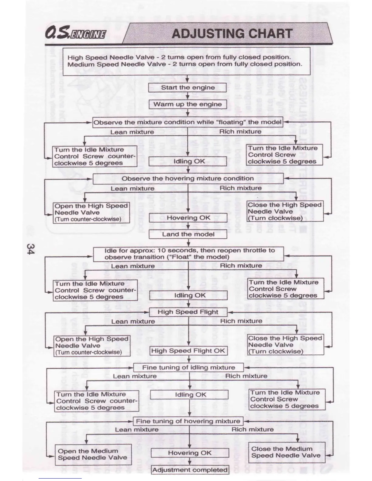 O.S. engine MAX-91HZ - Adjustment Chart for Engine Tuning