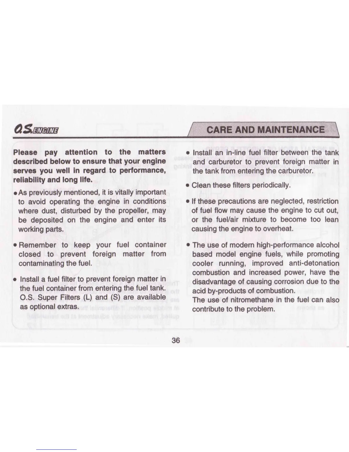 O.S. engine MAX-91HZ - Engine Care and Maintenance