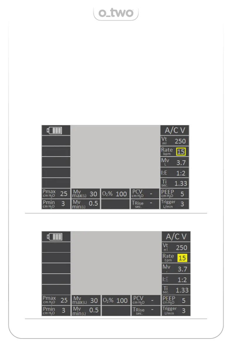 ventilation mode setup, or to the parameter to be set up located