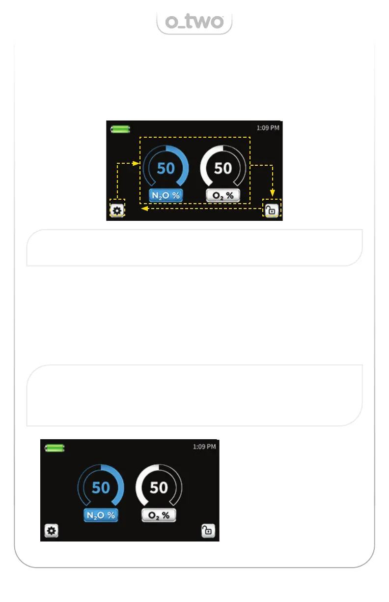 Note: If the screen is locked the selection of the mode, gas mixture