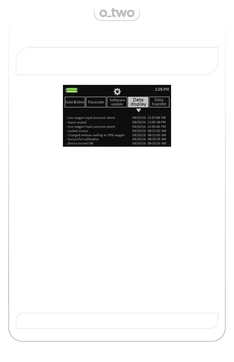 actions, turning the device ON or OFF, pressing the Oxygen Flush key,