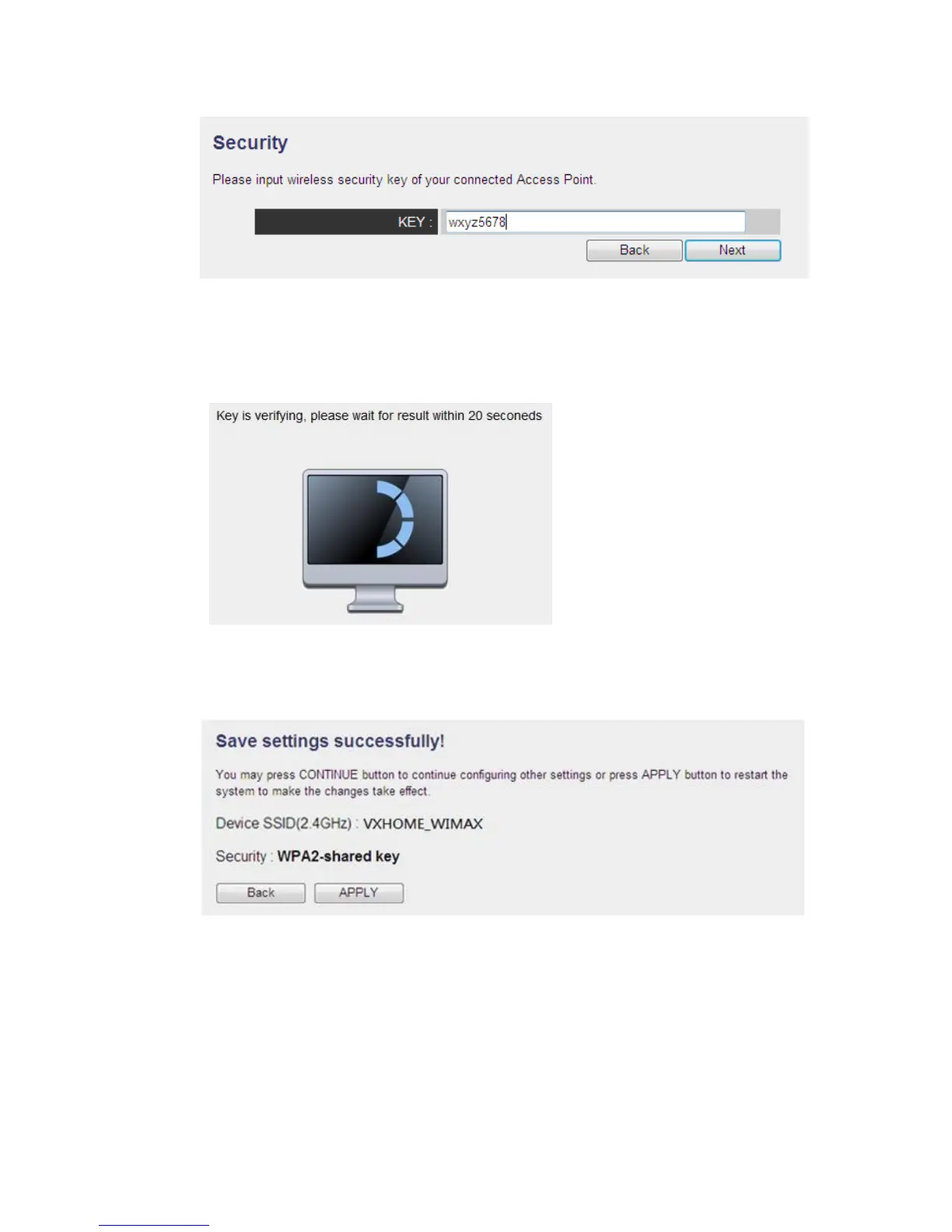 (4) It will start to verify the wireless key with your associated wireless router and