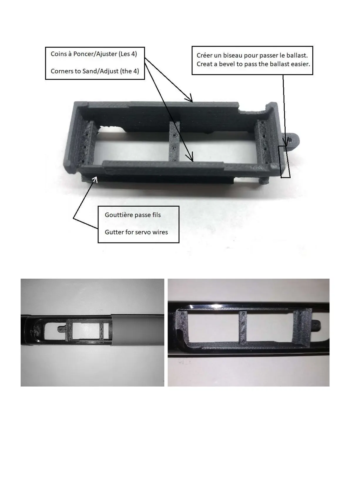 To leave the possibility of ballasting the glider correctly, a distance of around 23 mm between the end of the tray and the