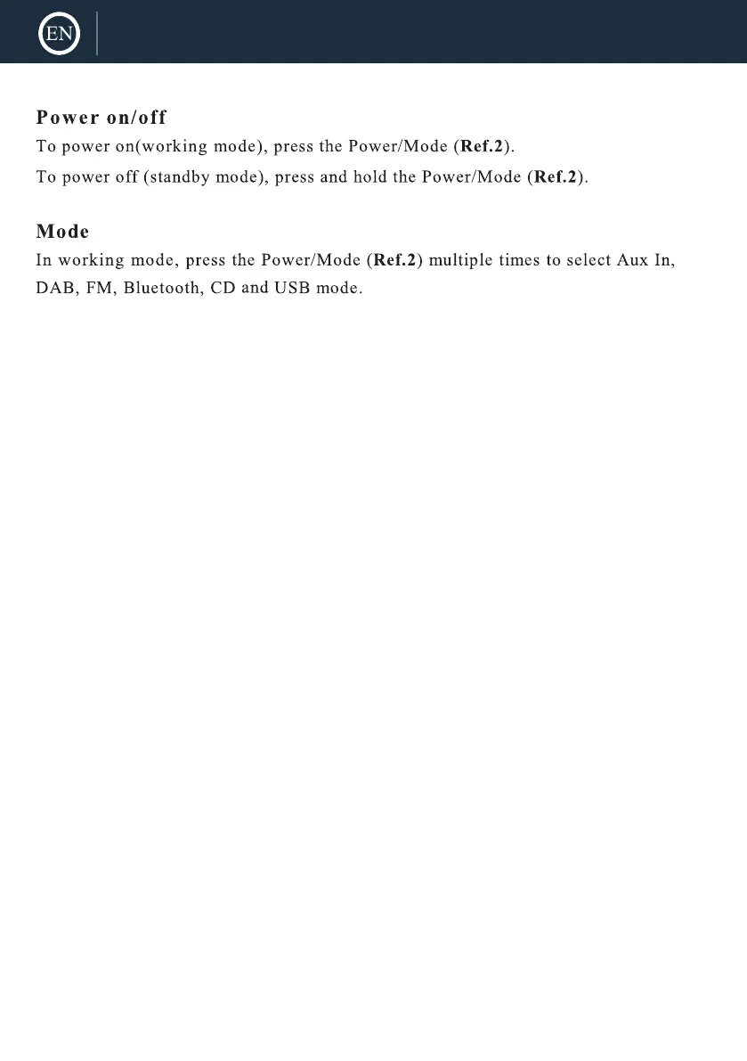 Oakcastle DAB400 - Basic Operations; Power on;off; Mode Selection