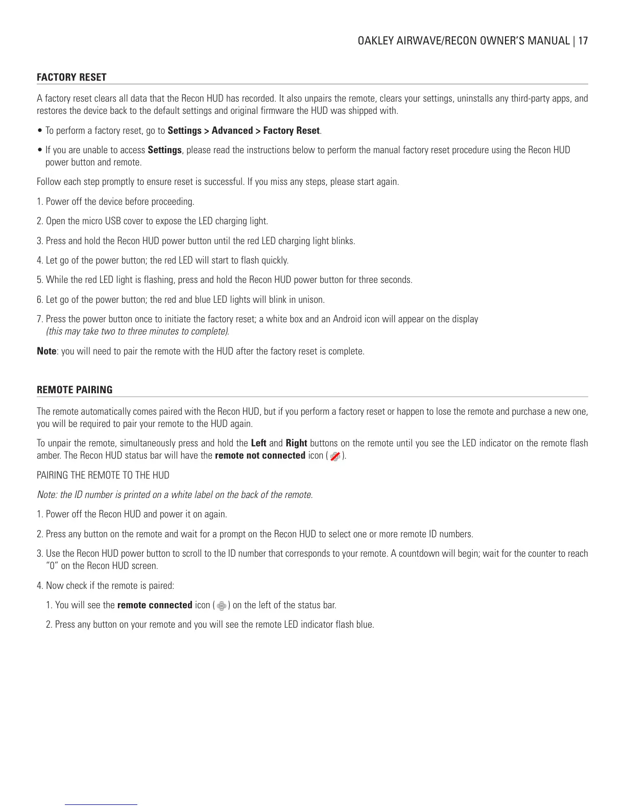 OAKLEY AIRWAVE/RECON OWNER’S MANUAL | 17