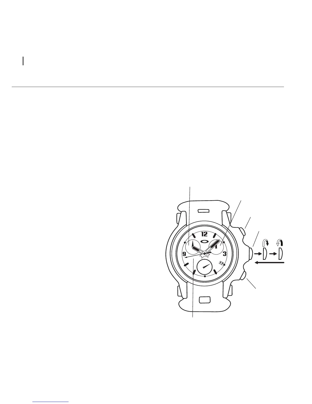 1. If the chronograph hands currently show a measured time, use button “B” to reset