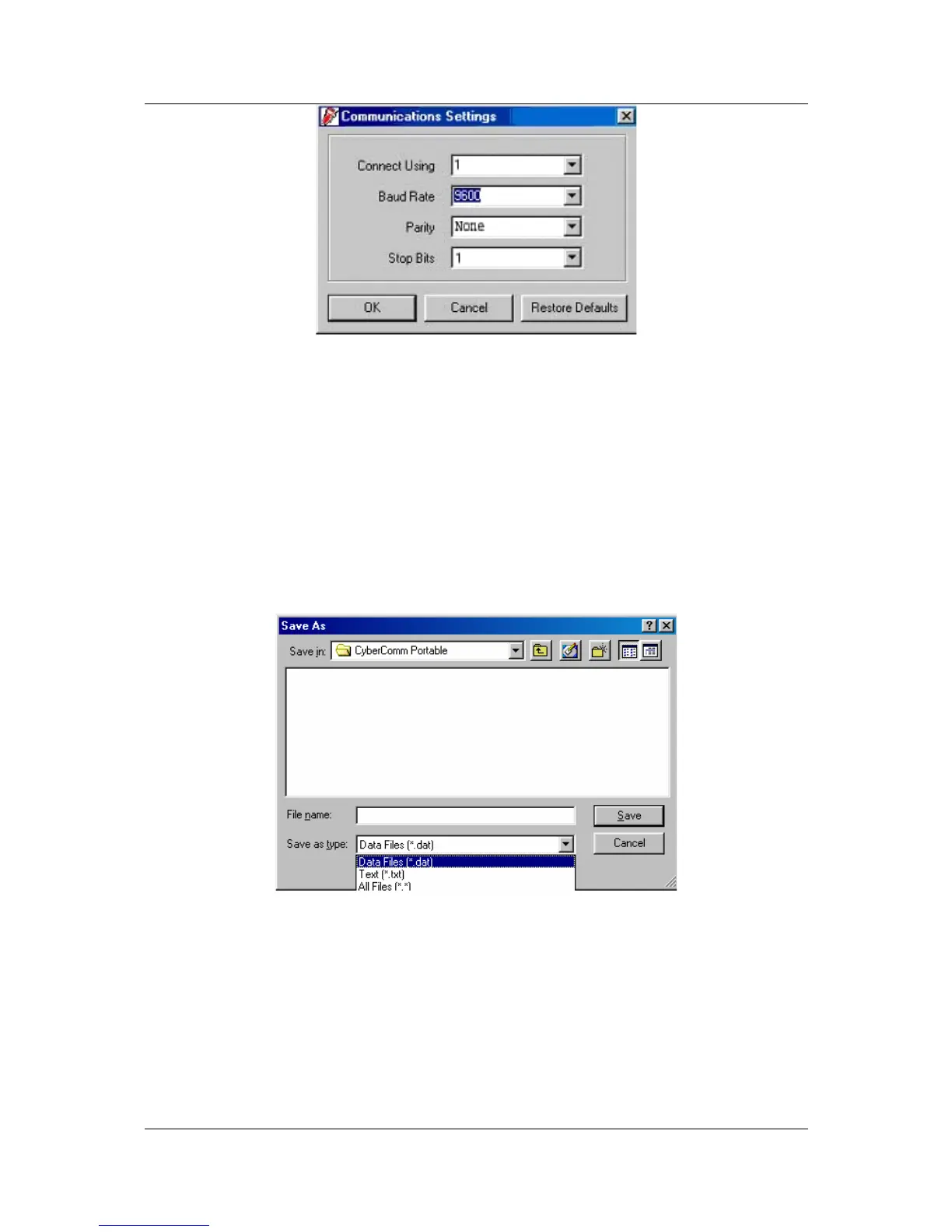 Figure 62: Communication Settings for computer's Com port. It must match with COM port