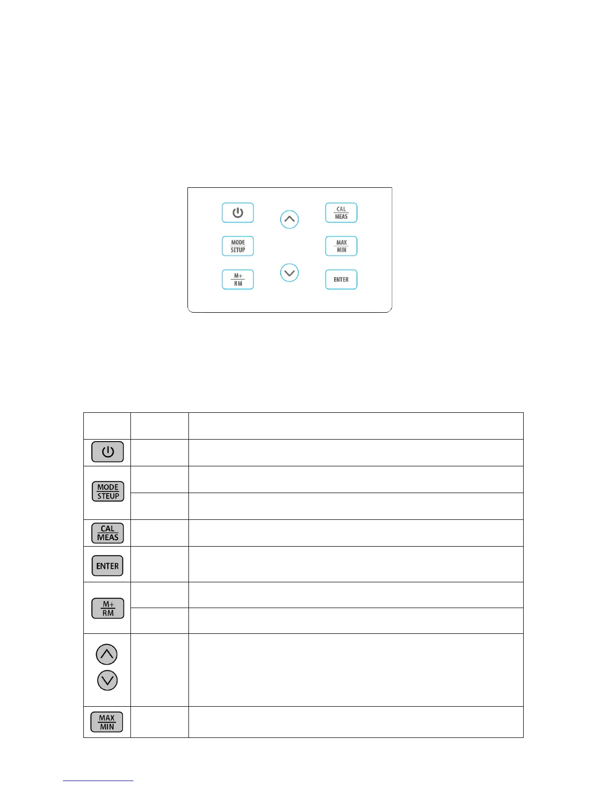 In calibration mode, press to conduct calibration