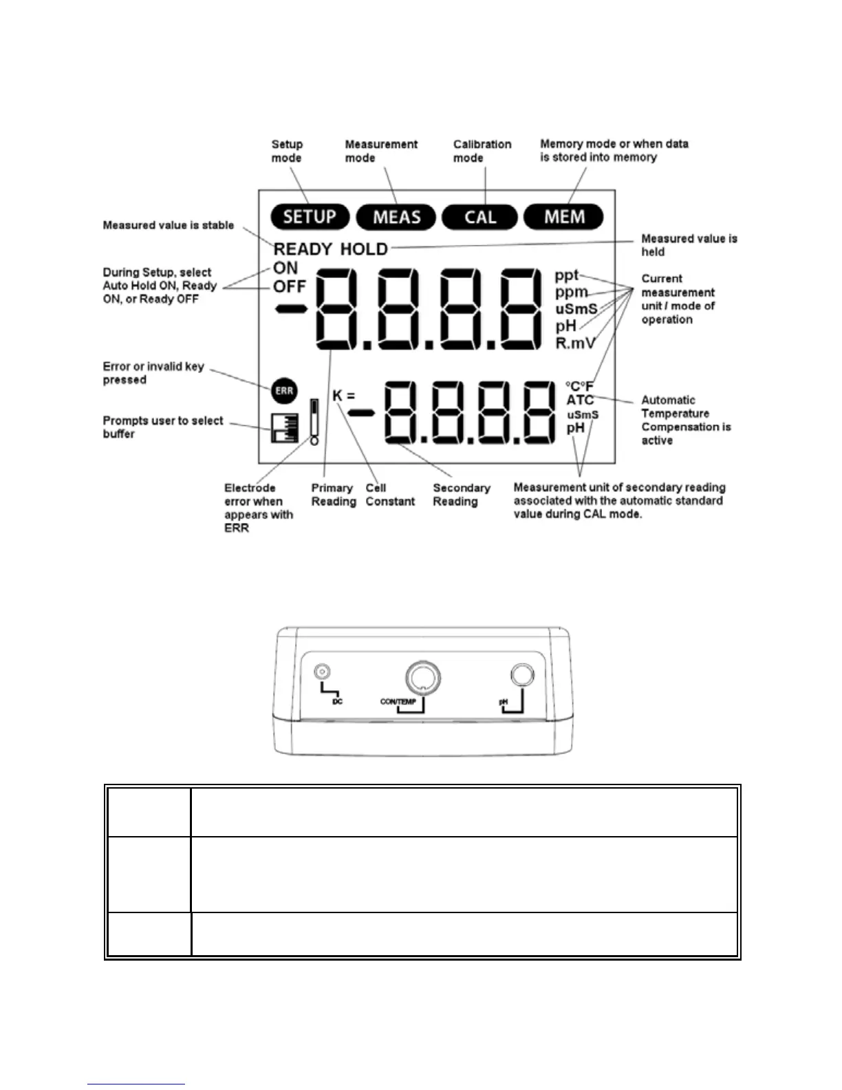 Oakton PC 700 - LCD Annunciators; Meter Connections