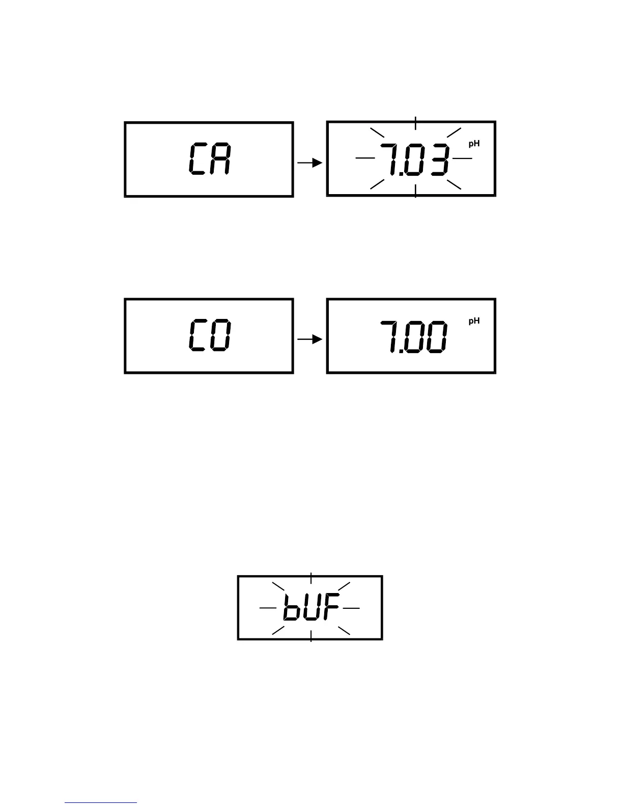 “CO” displays momentarily before reverting to pH measurement mode.
